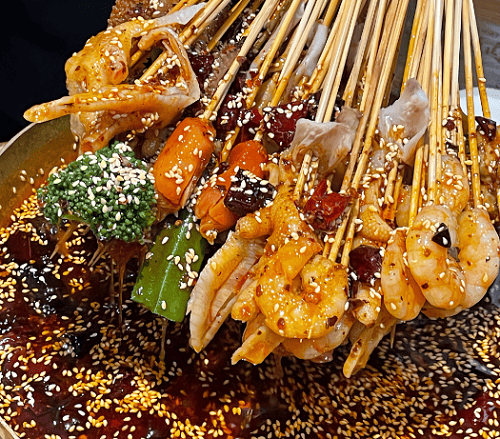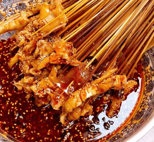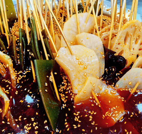 钵钵鸡起源于四川乐山,本质上就是“冷串串”。红油飘香、麻辣鲜亮,顾客想吃几串就夹几串,价格实惠又有选择感。和烤串、麻辣烫比起来,它更适合夏天,更符合“轻食+社交”的趋势。特别是在城市夜市或大学城,钵钵鸡摊位几乎总是排队的。