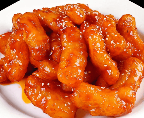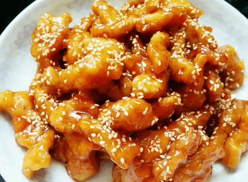 把炸好的肉条倒入糖醋汁中,快速翻炒,让每一块里脊都均匀裹上酱汁。几秒钟就要出锅,否则外皮会吸水变软。盛盘后撒点白芝麻点缀,看着就特别有食欲。