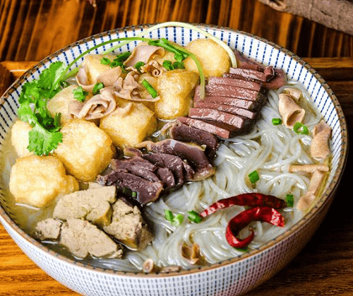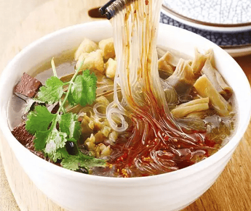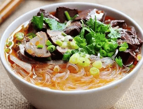 鸭血要选新鲜的,切块后用热水焯一遍,去腥增嫩,这样放入汤中才不会发酸。粉丝则多选择红薯粉或绿豆粉,提前用温水泡软,最后放入汤里稍微煮一下就能入味。