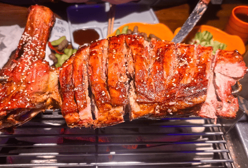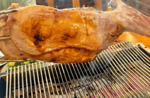 而控火,是烤羊腿的灵魂。炭火太猛外焦内生,火小又烤不出焦香。真正懂行的师傅,一看火苗的颜色就知道温度是否正好,一闻烟味就知道该不该翻面。