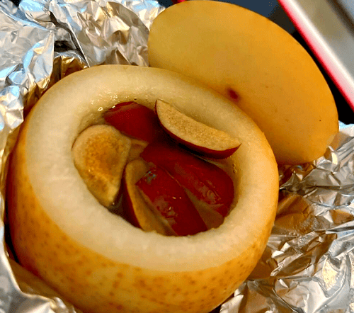 梨选用的是鸭梨或者雪花梨,这两种水分足、甜度适中,烤后能保持清香不腻。梨要洗净去核,但不能挖太深,留个“底”,防止糖液渗漏。
