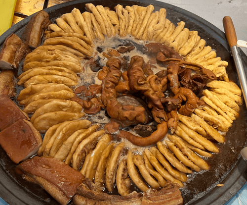 卤煮里面常见的食材——猪肺、猪肠、猪头肉、猪心、豆腐干、豆皮,每一样背后都有处理逻辑。
