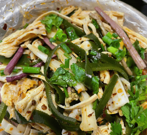 后来去济南学了一次,把红油和蒜水重新练了一遍,又学了几种卤味凉拌的搭配方法。回去之后,摊位还是那个摊位,但顾客明显比以前多了。